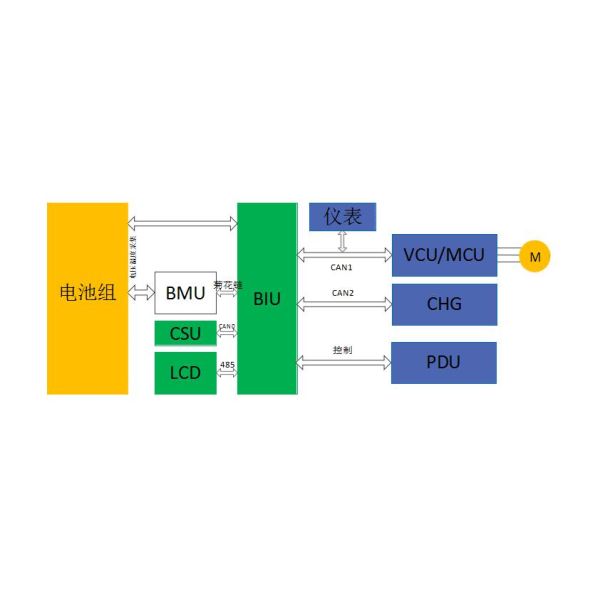 CAN2, used by the BIU to communicate with the vehicle VCU/MCU to receive commands and status information of the VCU/MCU.